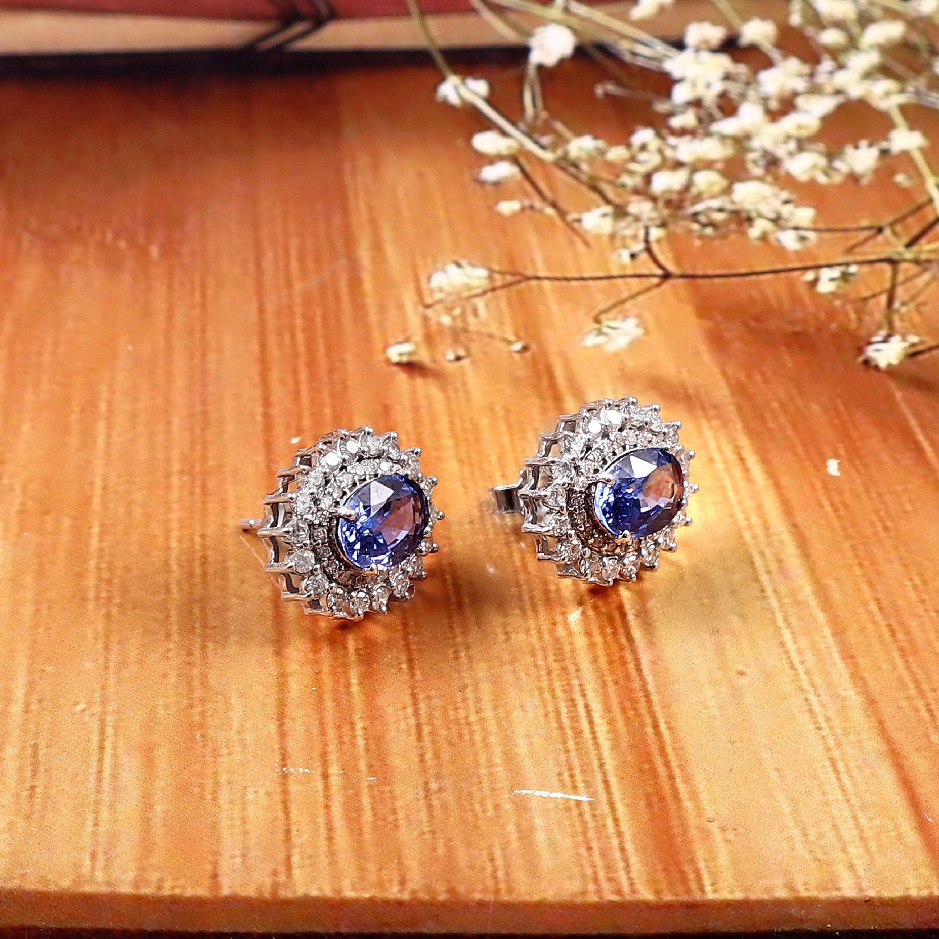 0.07 CT DIAMOND & 1.00 CT BLUE SAPPHIRE 14K YELLOW GOLD STUDS