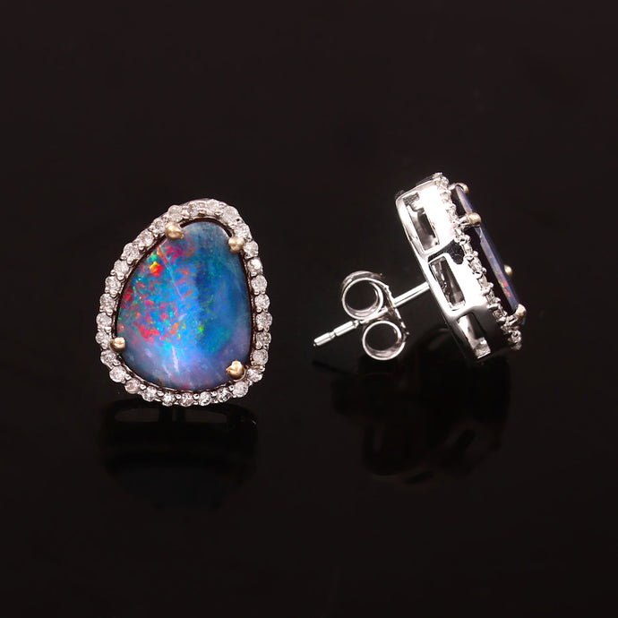 0.35 CT DIAMOND & 14K GOLD OPAL STUDS EARRING