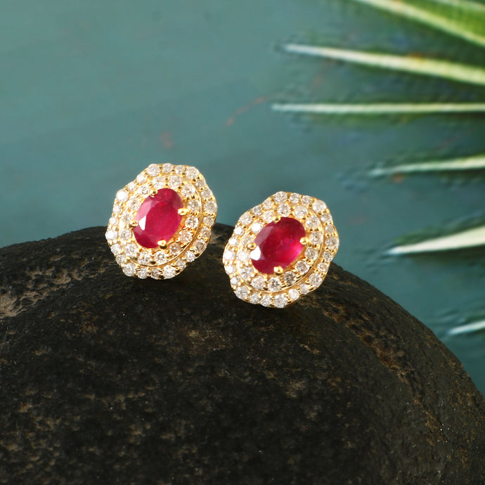0.60 CT DIAMOND & 1.30 CT RUBY 14K YELLOW GOLD STUDS