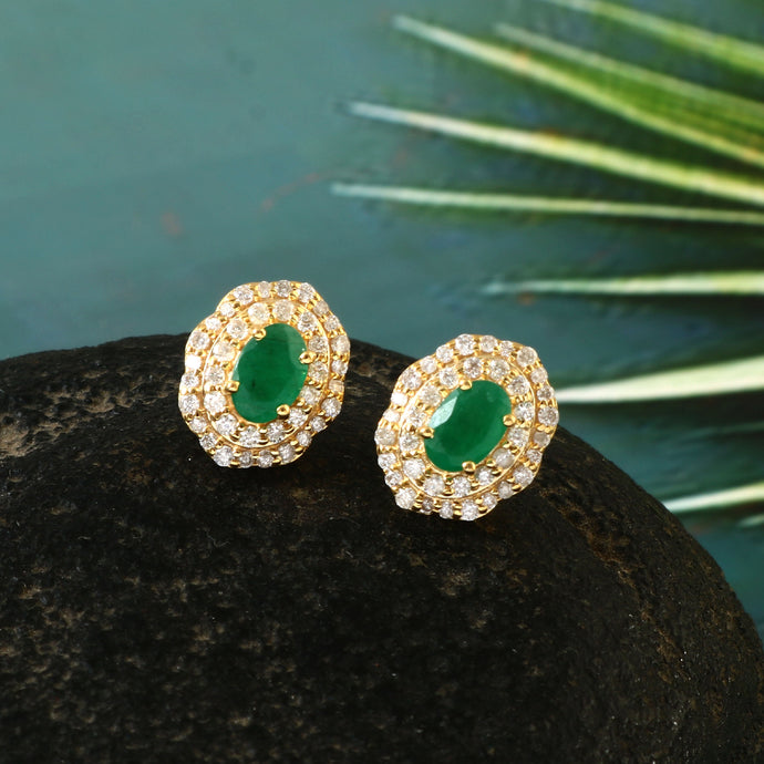 0.60 CT DIAMOND & 0.80 CT EMERALD14K YELLOW GOLD STUDS