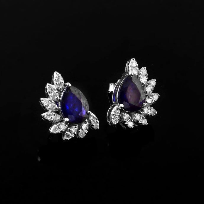 0.40 CT DIAMOND & 3.05 CT BLUE SAPPHIRE PEAR SHAPE 14K GOLD STUDS