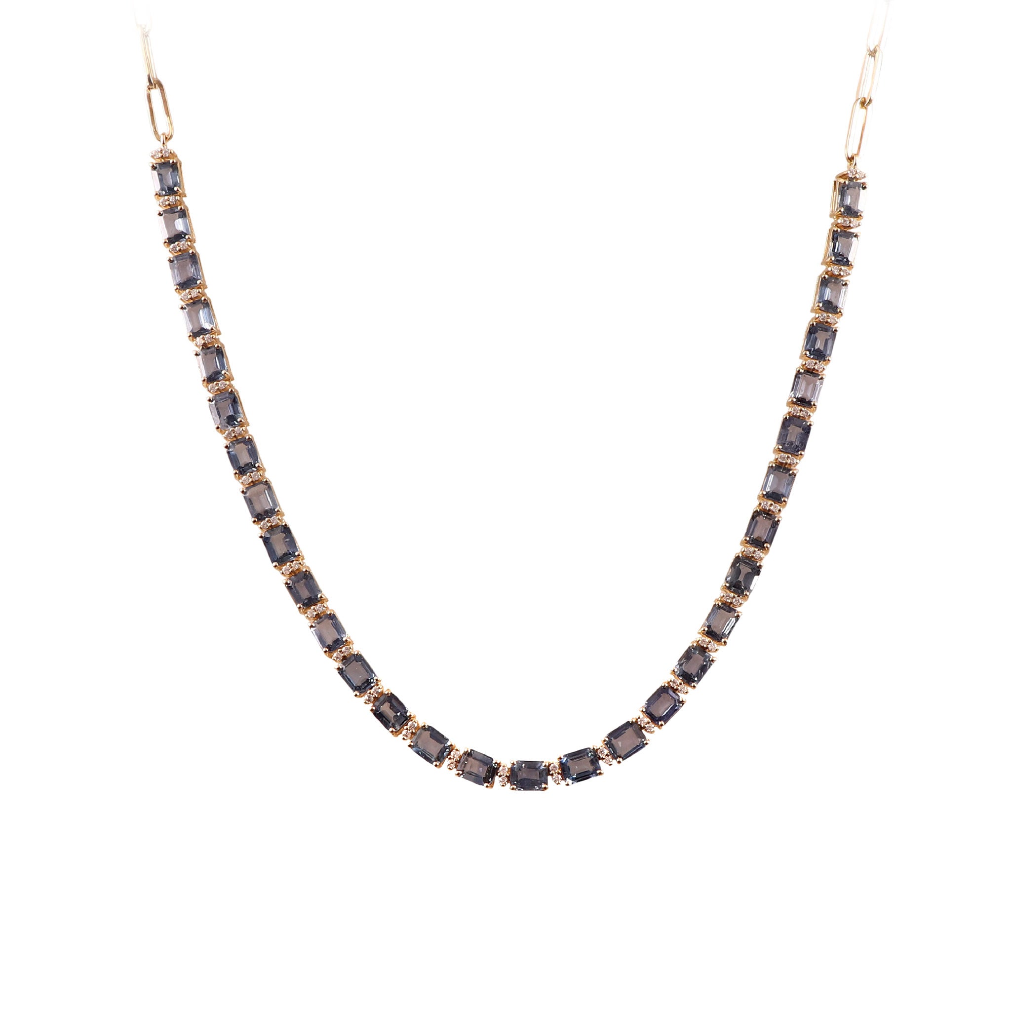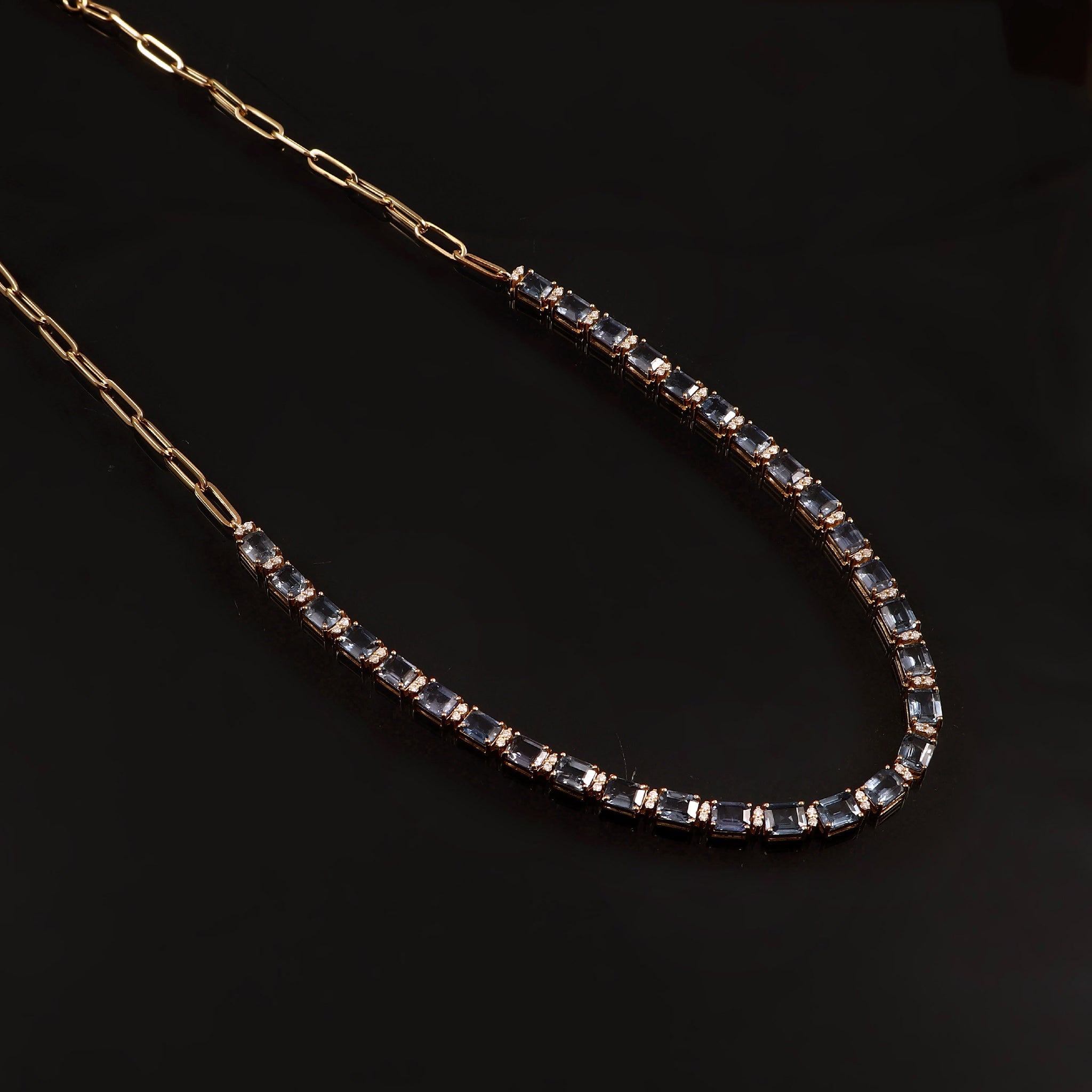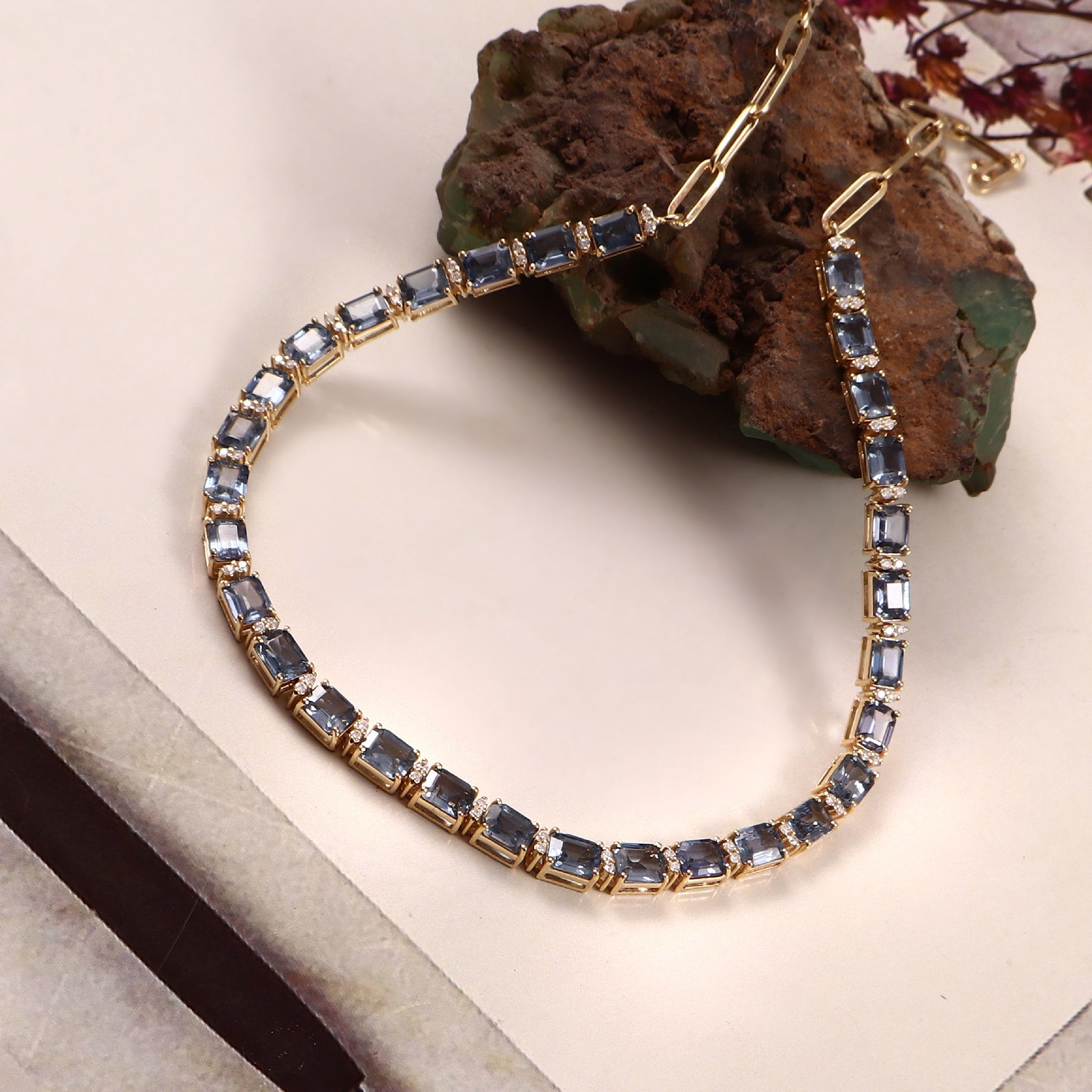 Handmade in 14k yellow gold diamond with heated blue sapphire necklace