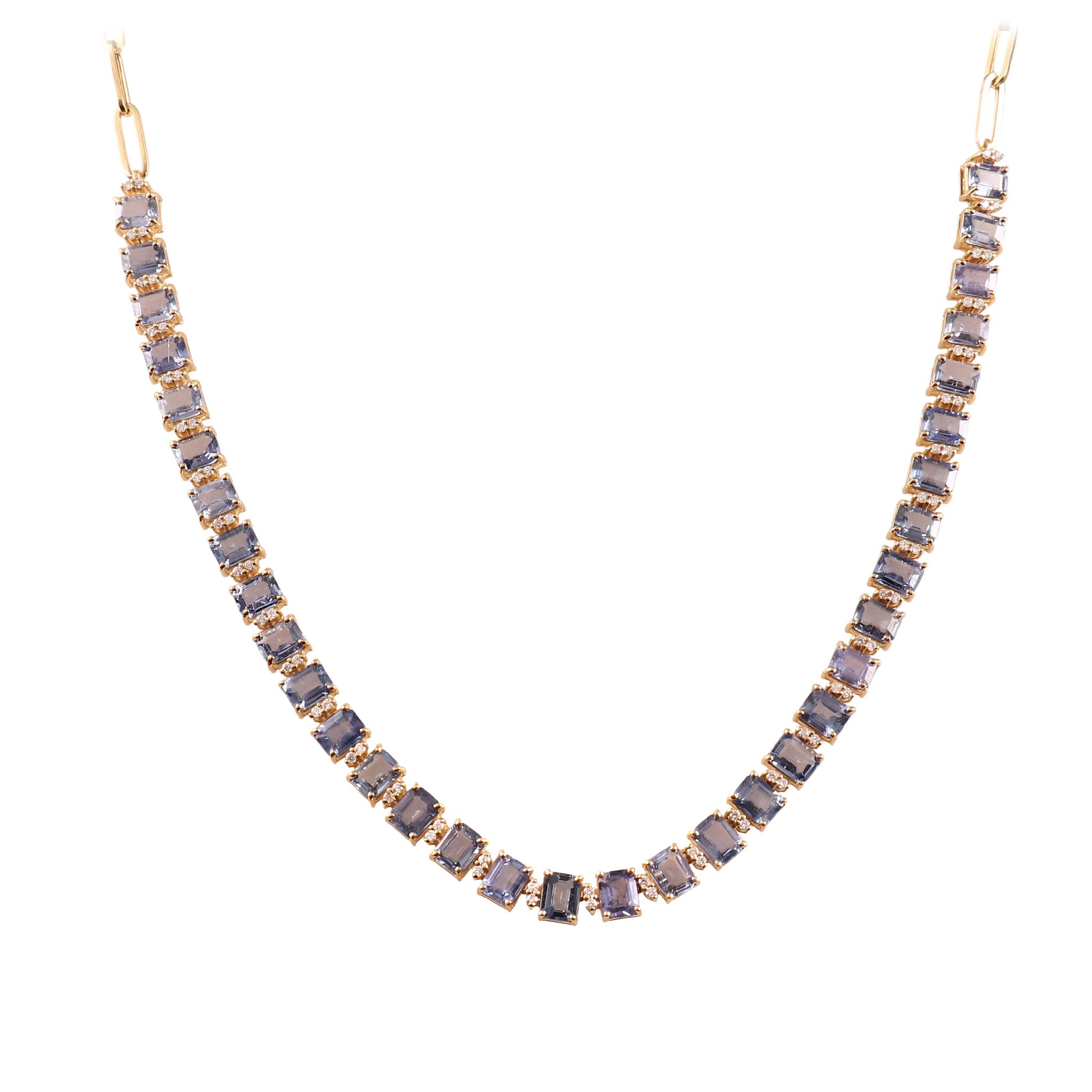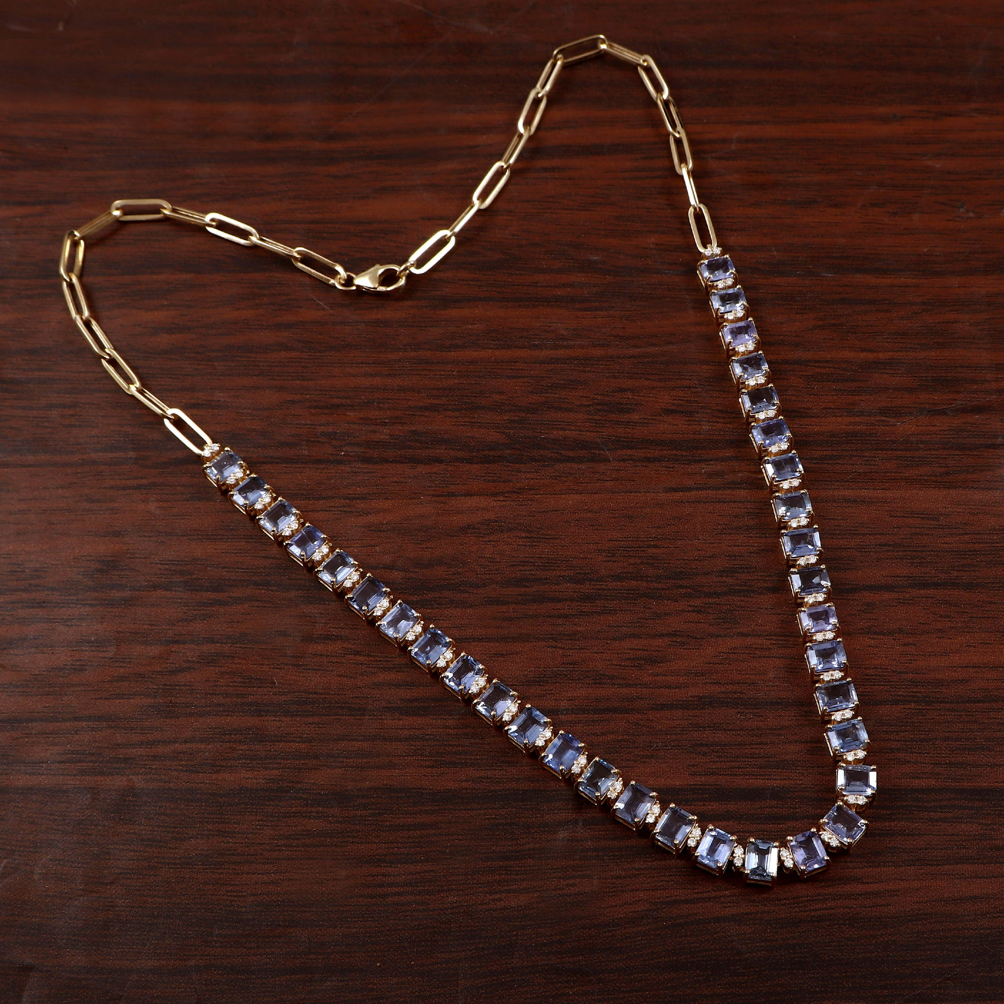 Handmade in 14k yellow gold diamond with heated blue sapphire necklace