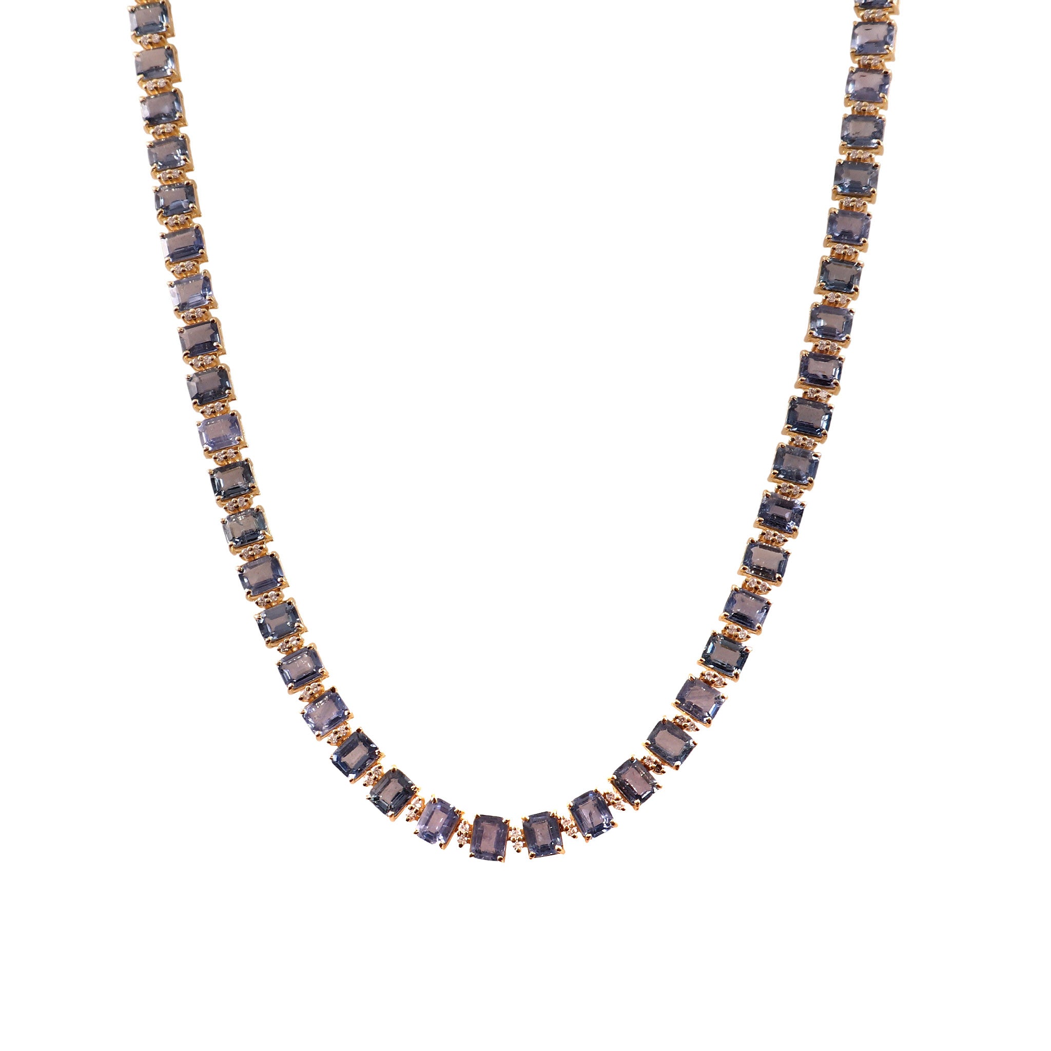 Handmade in 14k yellow gold heated blue sapphire necklace