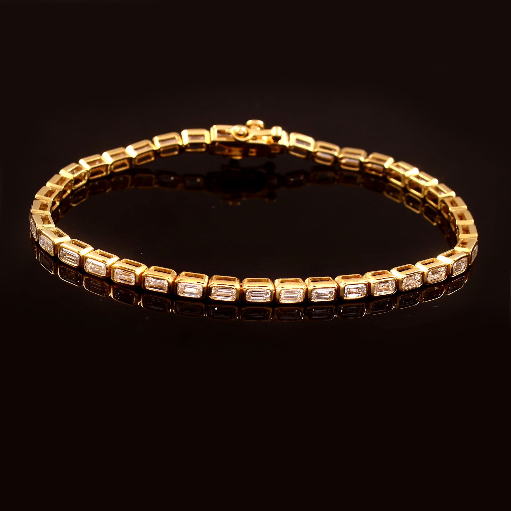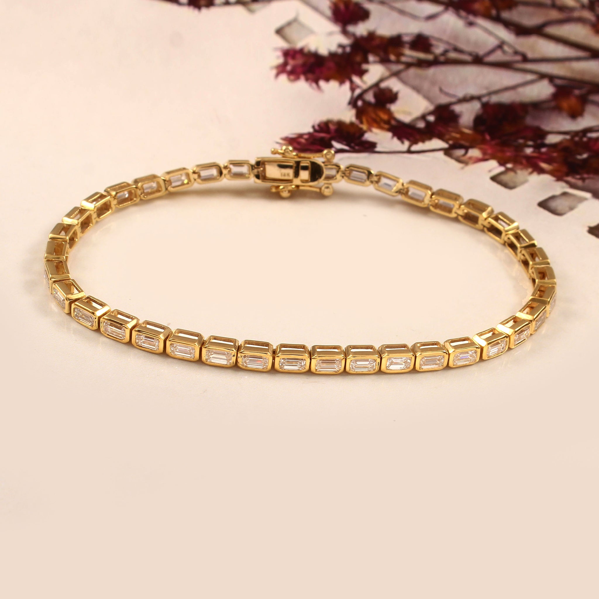 Handmade in 14k yellow white gold lab grown diamond tennis bracelet