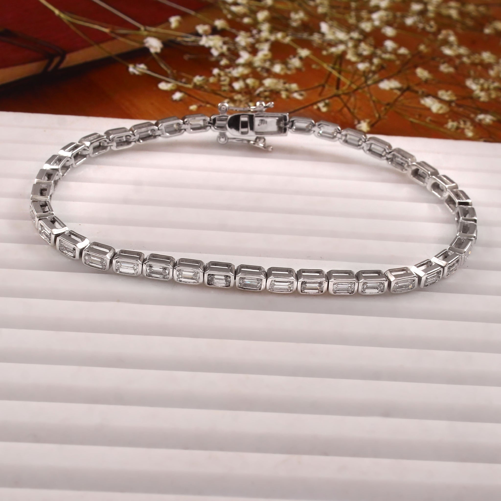 Indulge in affordable luxury with our lab-grown diamond bracelets. The elegant design showcases a stunning array of sparkling diamonds, customizable in your choice of 14K white or yellow gold. Perfect for those who value style and sustainability. Rely on our expert team to help you find the ideal piece that fits your personal values and fashion sense.